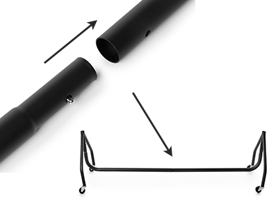 Push the uprights into the legs making sure the push pins ‘click’ into their locking holes. Connect the uprights with the adjoining centre rail together with the extensions to lock together all rail sections. Your rail is now complete.
